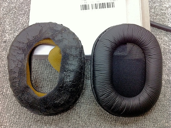 ご覧のとおりイヤーパッドはボロボロ。つーかちょっとヒドすぎ(汗)
