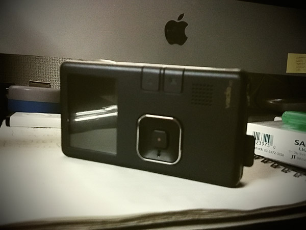 iPhoneよりも一回り小さいサイズの超軽量ポケットカム。こんな小さなやつですが、なんとHDのビデオが撮れます。画像品質は値段相応でありとびっきり素晴らしいものではないんですが、なにしろ機動力が素晴らしいです。ほんとに軽いんで、車の外装に貼付けて走行映像を撮ったりラジコンの飛行機に搭載して空撮したりとみなさん様々に使用されているようです。バンドの絵を撮るのにもなんか面白い事ができそうで、現在いろいろと思案中なのであります♪