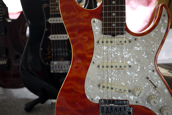 え〜っ!?っと思って目を皿のようにしてチェックしたんですが、木目はどう見てもマホガニー。記述は間違いかと思われます…。実際アルダーバックも存在するようですが、さすがの自分もマホガニーとアルダーの木目を見間違いはしませんので…。