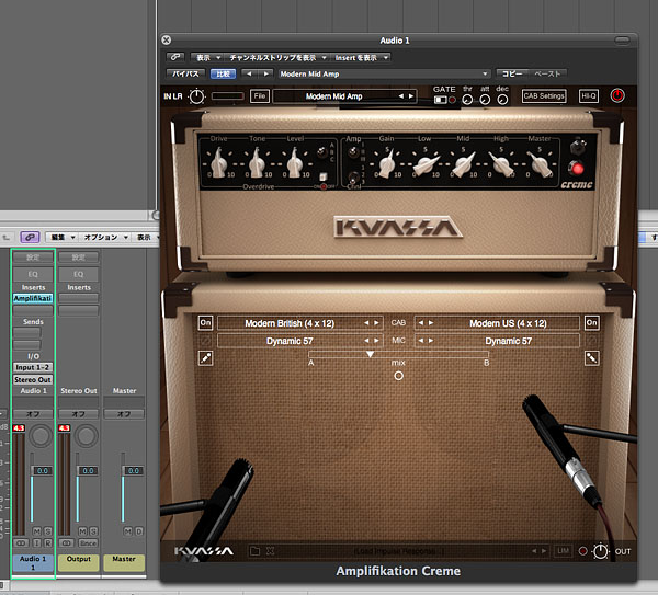 AMPLIFIKATION CREMEです。上の画像はLogic上でプラグインのウインドウが開いている状態です。見るからにシンプルなアンプ〜って感じで、なかなか好感が持てます。