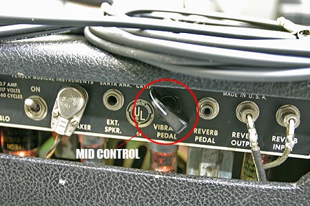 ビブラートのINTENSITYノブがドライブ回路の入り込むレベルを調整するボリューム。